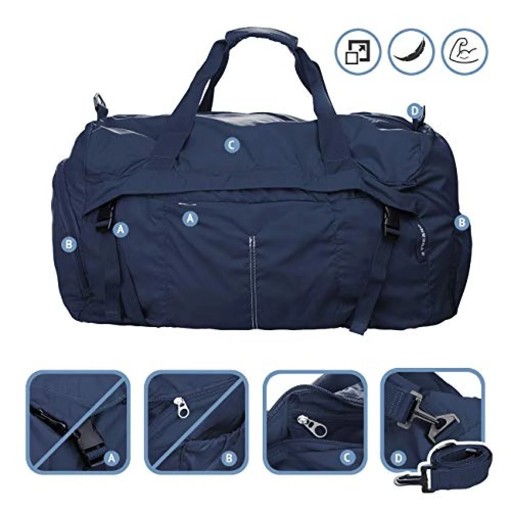 - This duffle folds into a compact pouch